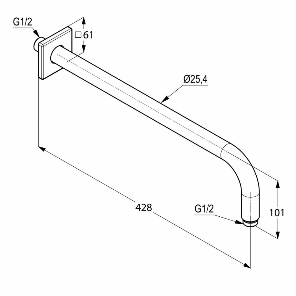 Настенный кронштейн для верхнего душа Kludi A-qa, арт. 6653405-00, с квадратным отражателем, длина 400 мм