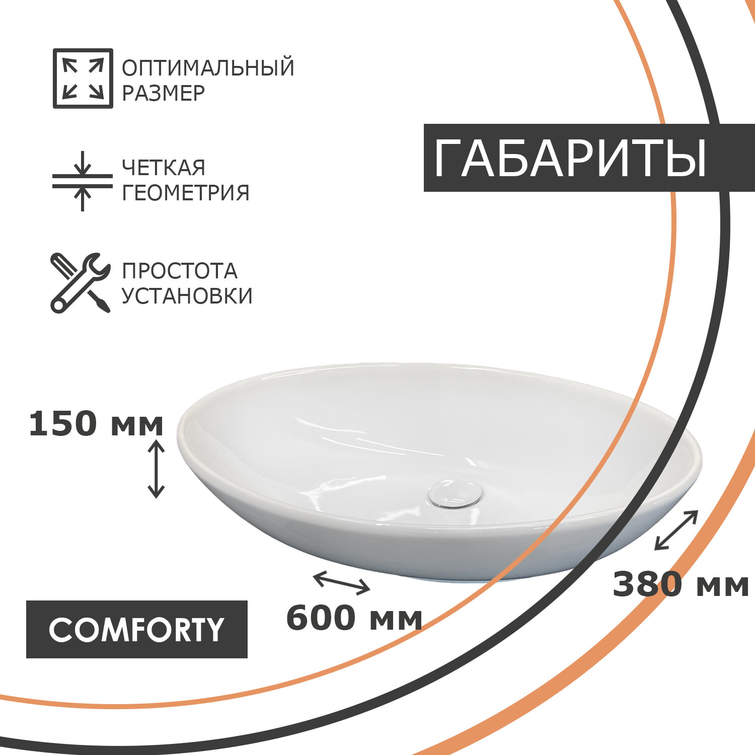 Овальная накладная белая раковина Comforty 7689 из фарфора 60х38х15см интересное: