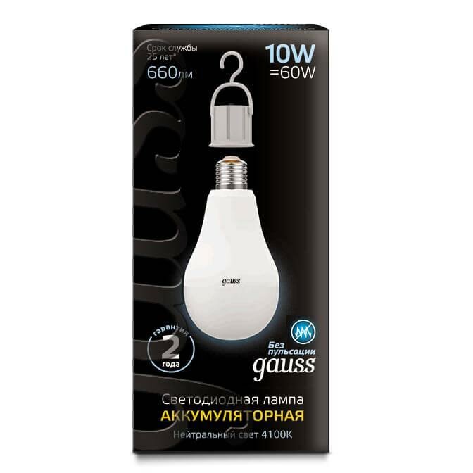 Купить Лампа светодиодная Gauss A60 10Вт цок.:E27 груша 220B 4100K св.свеч.бел.нейт. (упак.:1шт) (102402200)