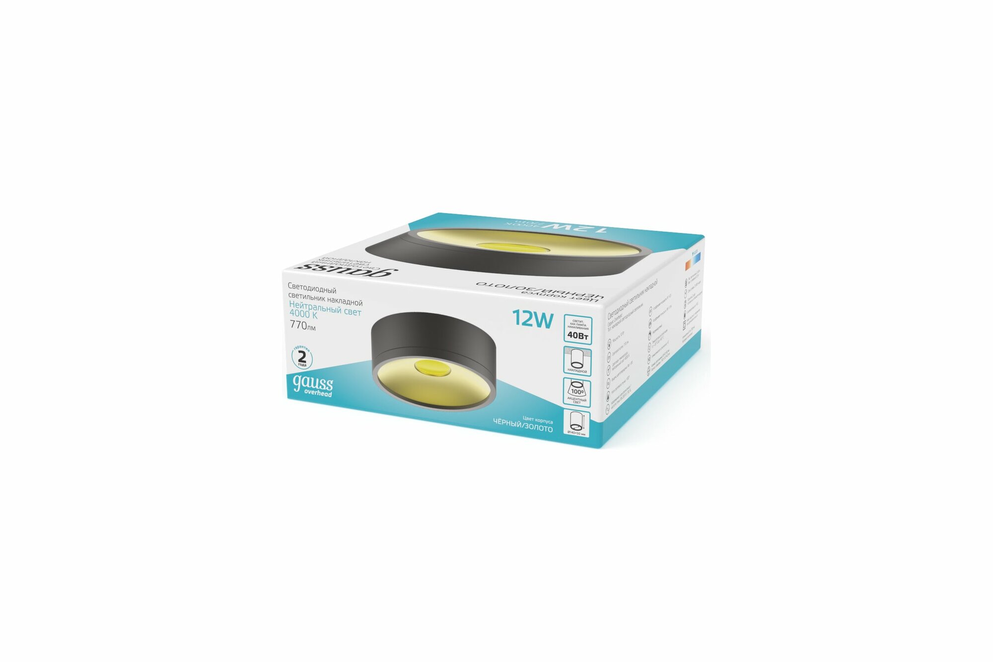 Светильник Gauss Overhead HD040 потолоч. 4000K цв.св.:белый серебристый/золотистый