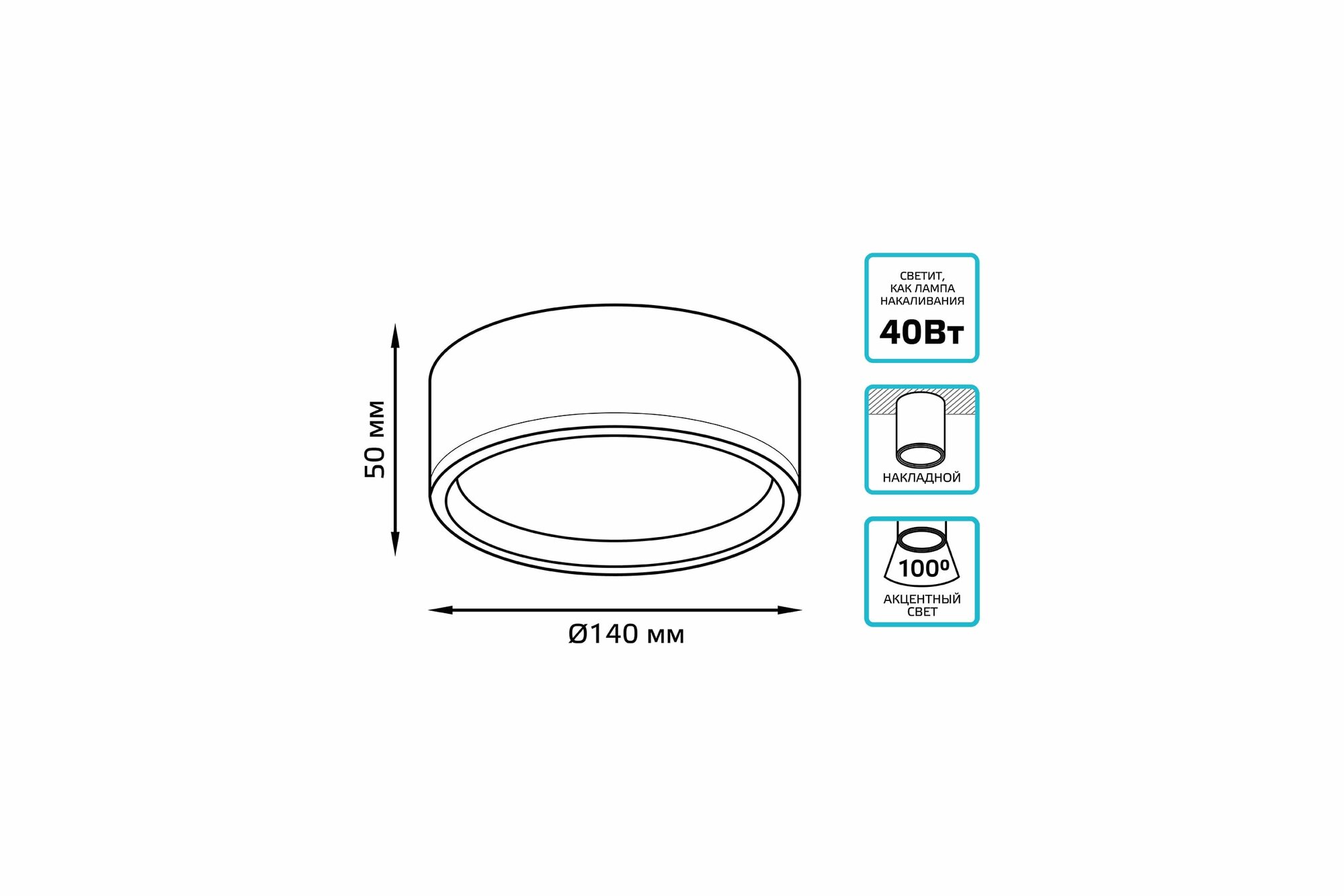 Светильник Gauss Overhead накл цил 12W 770lm 4000K 170-240V IP20 140*50мм черный золото LED 1/30