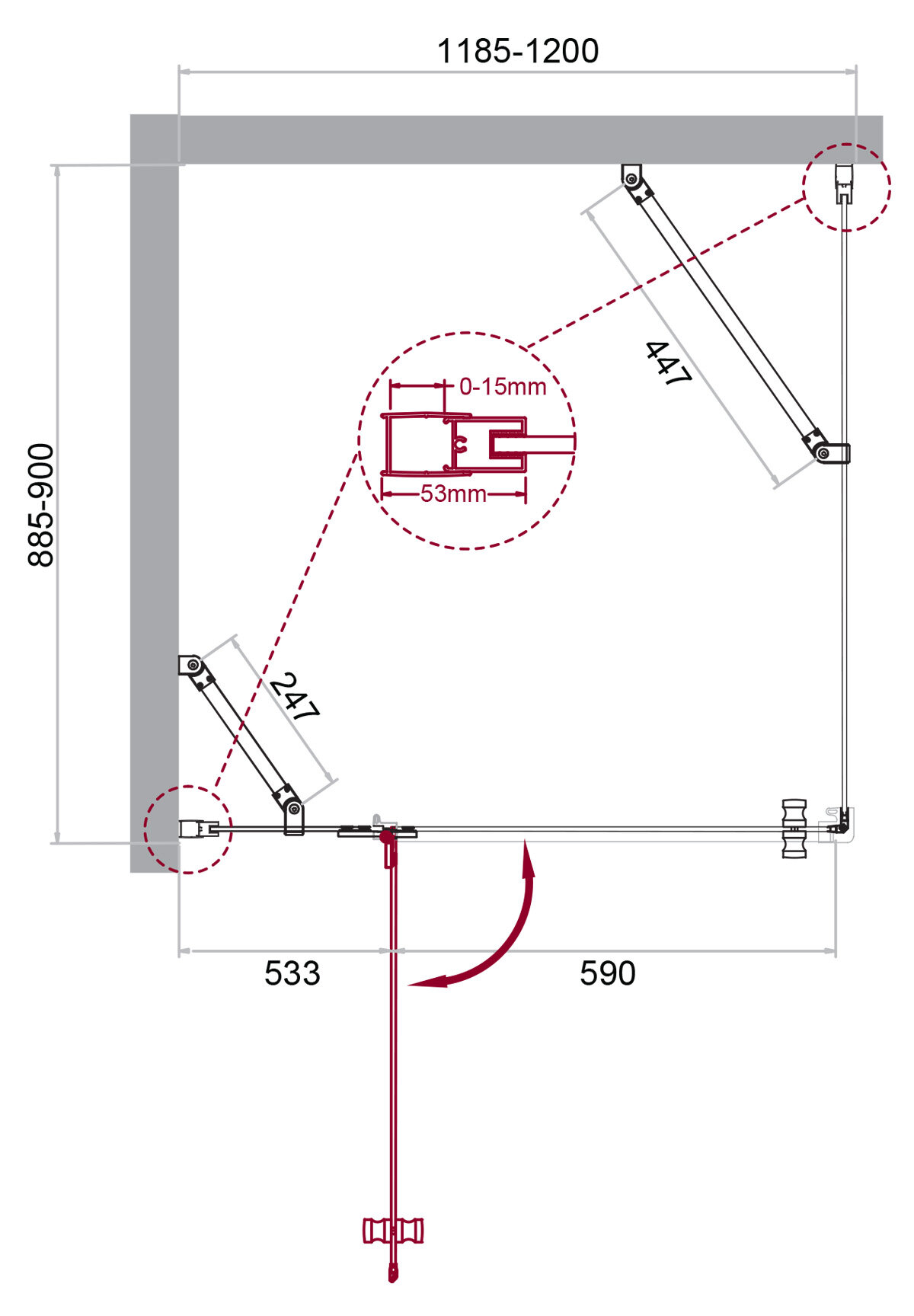 Душевой уголок BELBAGNO KRAFT-AH-12-120/90-C-Cr-L, левосторонняя