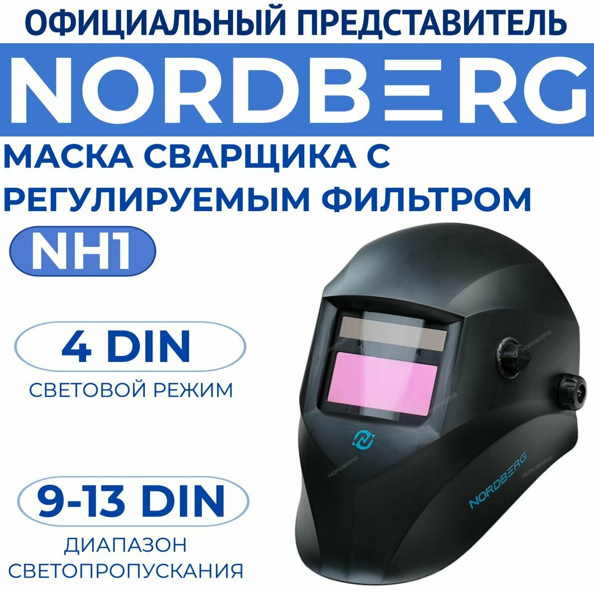 NORDBERG NH1 Маска сварщика "Хамелеон" с регул. фильтром (MMA+MIG) NORDBERG NH1