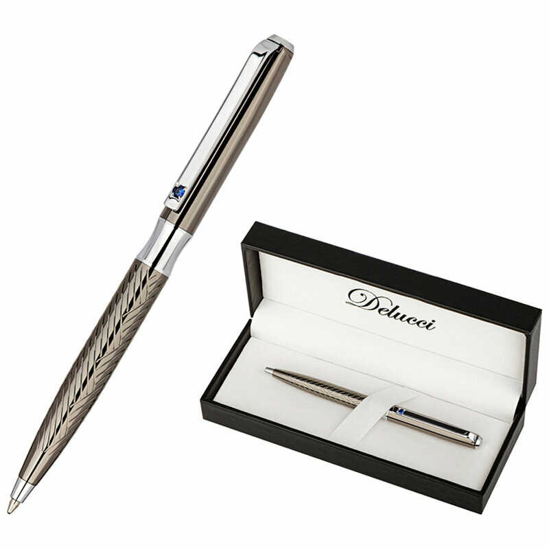 Ручка шариковая Delucci "Taglia" синяя, 1,0 мм, корпус цвет оружейный металл/серебро, с кристалл, подарочная упаковка