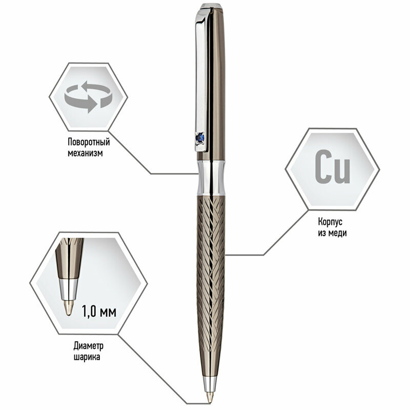 СохранитьРучка шариковая Delucci «Taglia» синяя, 1.0мм, корпус оружейный металл/серебро, с кристалл, подар. уп интересное: