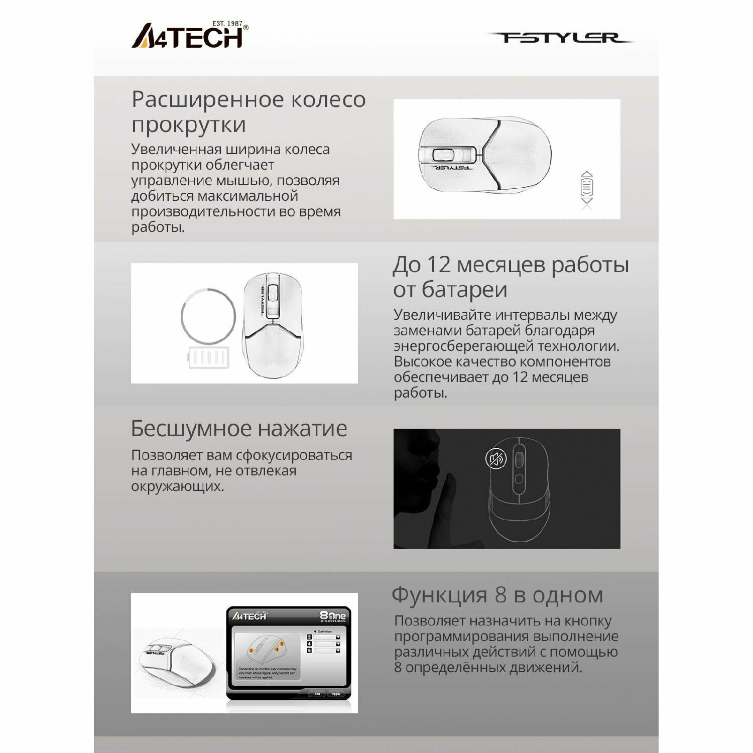 Мышь A4TECH Fstyler FG12S, оптическая, беспроводная, белый