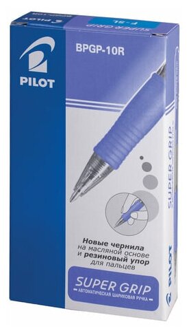 Pilot Ручка шариковая автоматическая BPGP-10R-F SG SUPER GRIP синяя масляная манжетка 0, 22