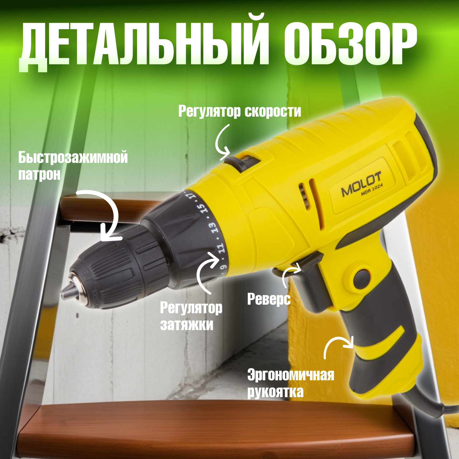 Дрель-шуруповерт сетевая MOLOT MDR 1025 быстрозажимной патрон (0323330)