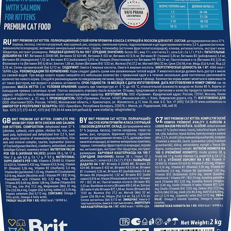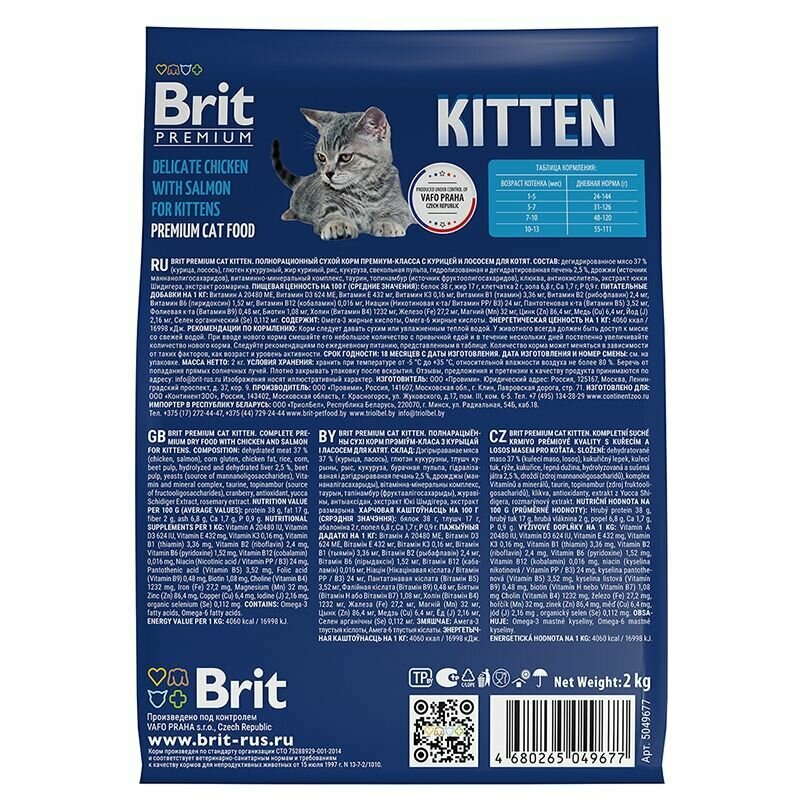 Брит Премиум Cat Kitten 0,8кг х 2шт курица и лосось сухой для котят