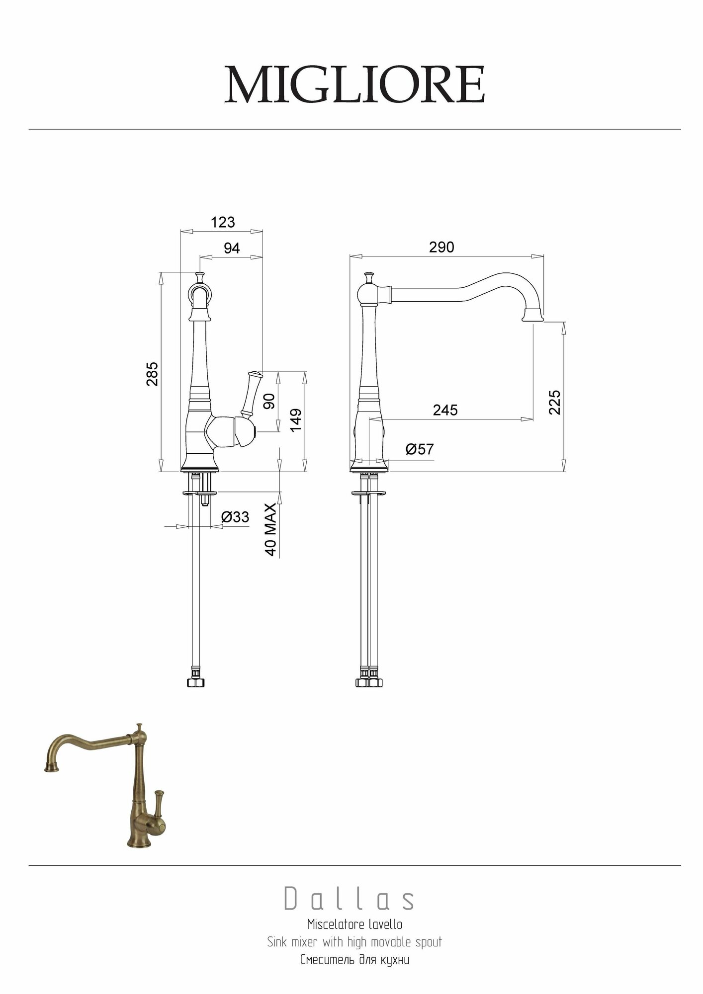 Смеситель Migliore Dallas 18219 для кухонной мойки, хром