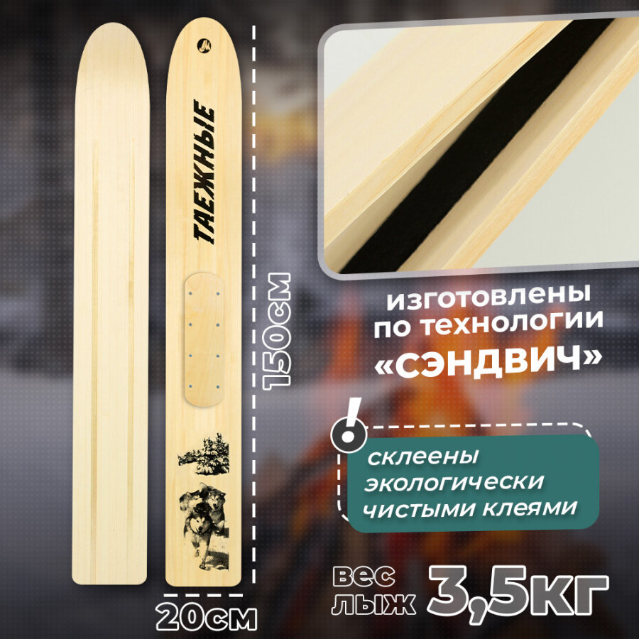 Охотничьи лыжи Маяк таежные 150х20 см с камусом 6 см, дерево + деревянные накладки / Промысловые для охоты, рыбалки, туризма