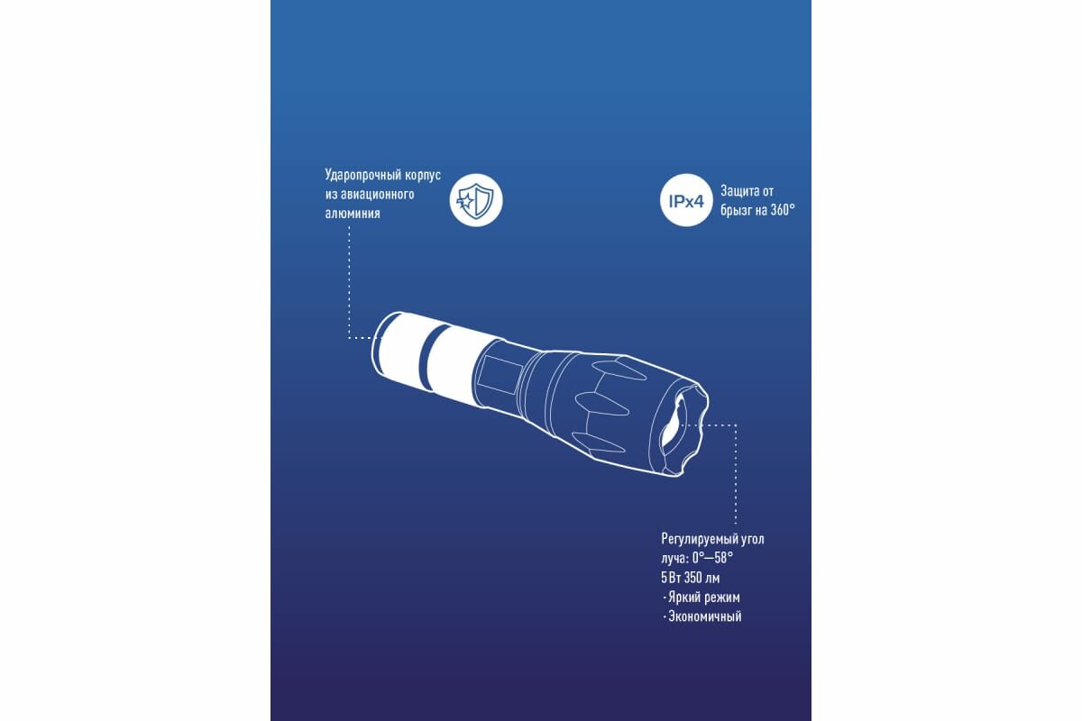 Фонарь Premium KosAl_5W, авиационный алюминий 5Вт Q5 LED,дальность 200м питание 1*3,7V 18650 Li-on космос