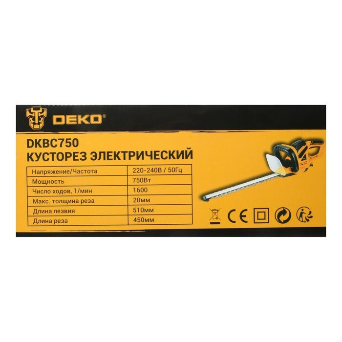 Купить Кусторез электрический DEKO DKBC750, 750 Вт, лезвие 510 мм, 1600 ход/мин