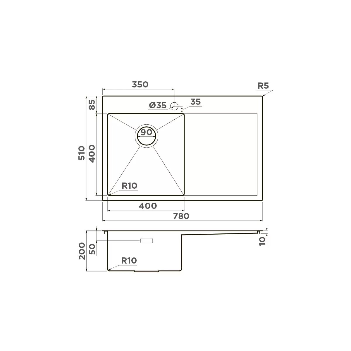 Врезная кухонная мойка LEX Maury 510