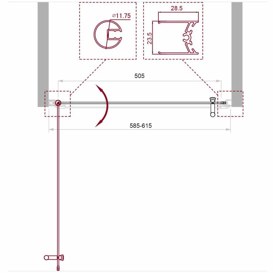 | Дополнительная информация | Комплектация | Душевая дверь - 1 шт. ,Инструкция - 1 шт.;Ширина. мм | 600;Толщина полотна двери, мм | 5;Материал полотна двери | стекло;Материал профиля | алюминий;Монтаж | напольный;Поверхность | глянцевая;Дополнительная информация | диапазон регулировки ширины, 58,5-61,5 см; |