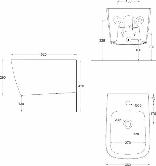 Artceram A16 Биде подвесное 36х52 см, с креплением, с 1 отв под смеситель, цвет белый ASB001 01 00 интересное: