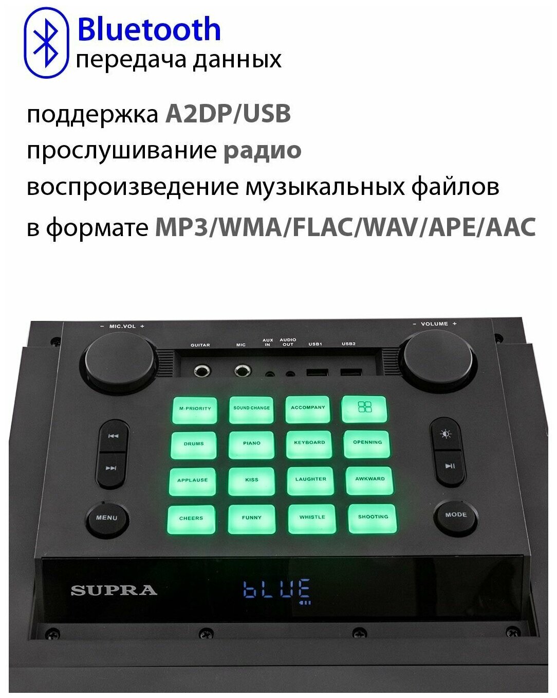 Акустическая система Supra SMB-1200 black 200Вт FM USB BT SD интересное: