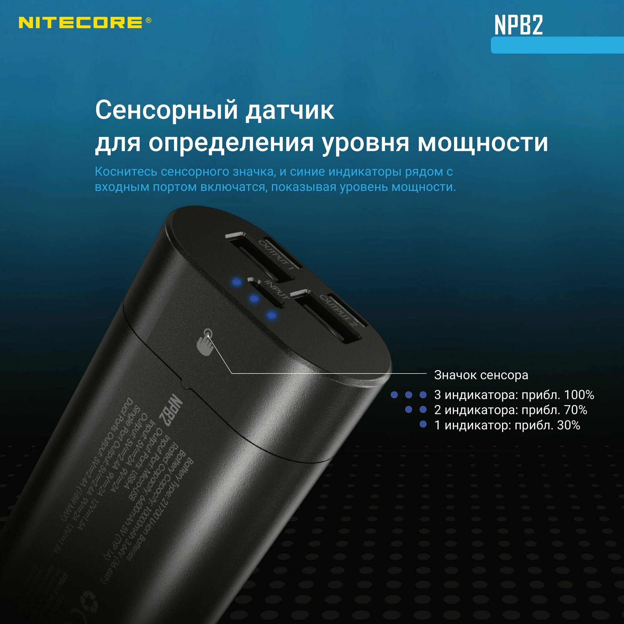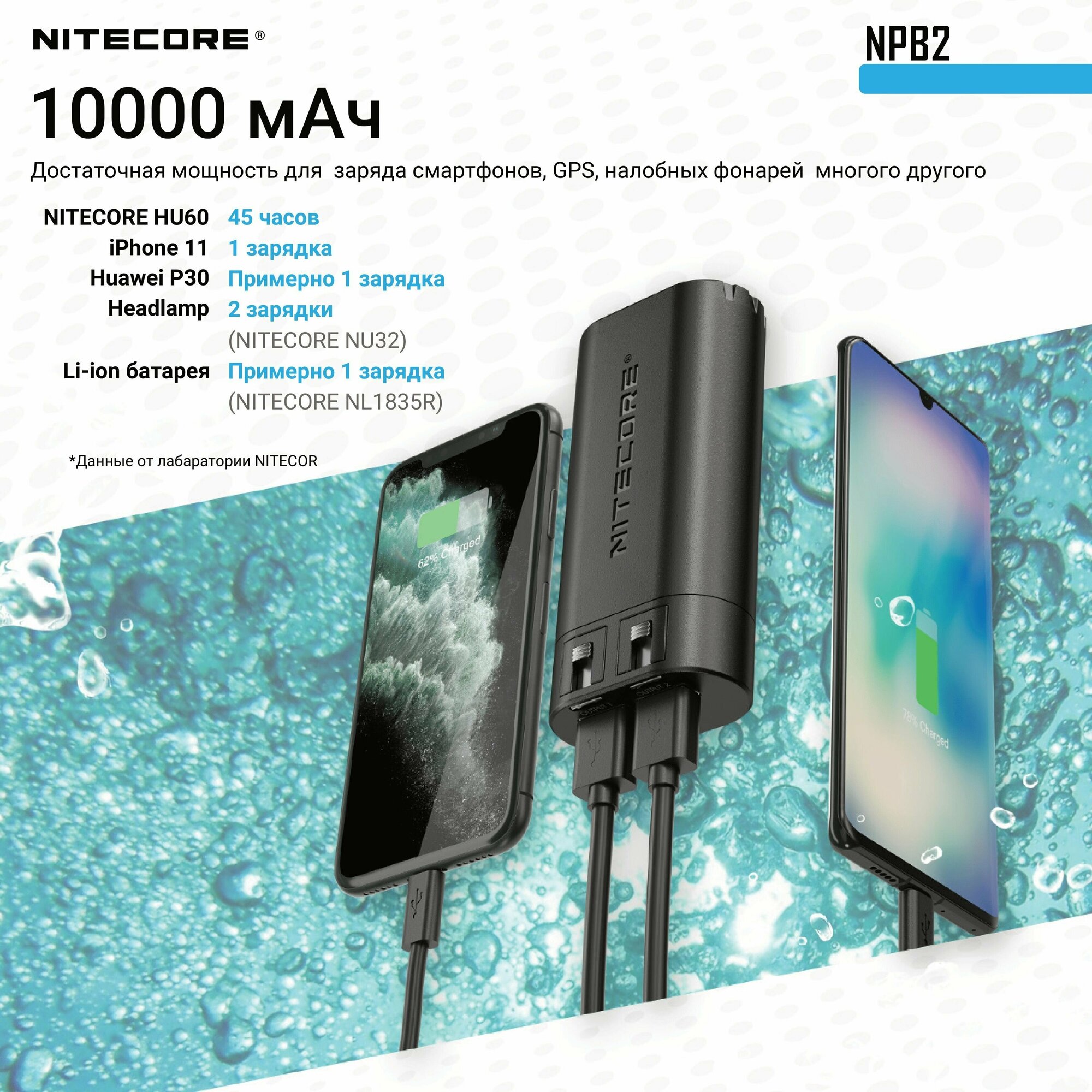Водонепроницаемый power bank 10000mAh IP68 NITECORE NPB2 Power Bank