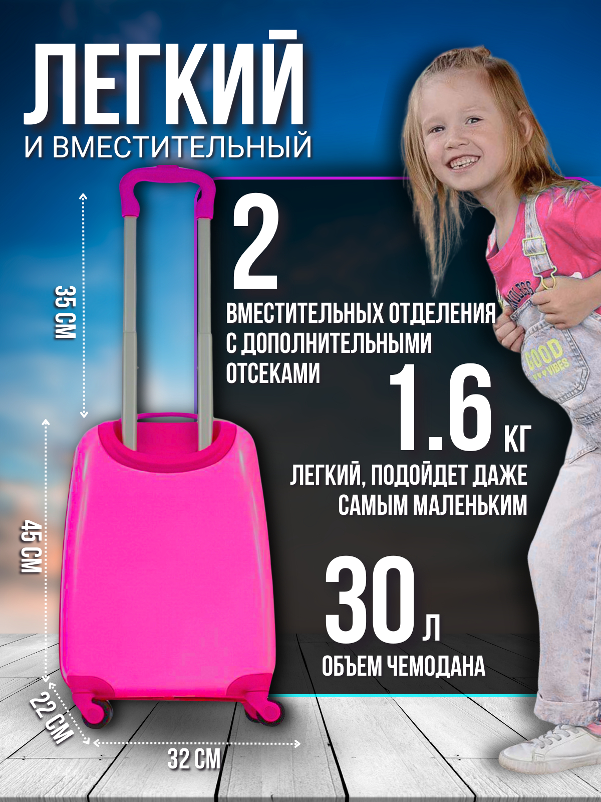 Чемодан дет. Котик 20", 35х20х40, отд. на молнии, 4 колеса, розовый