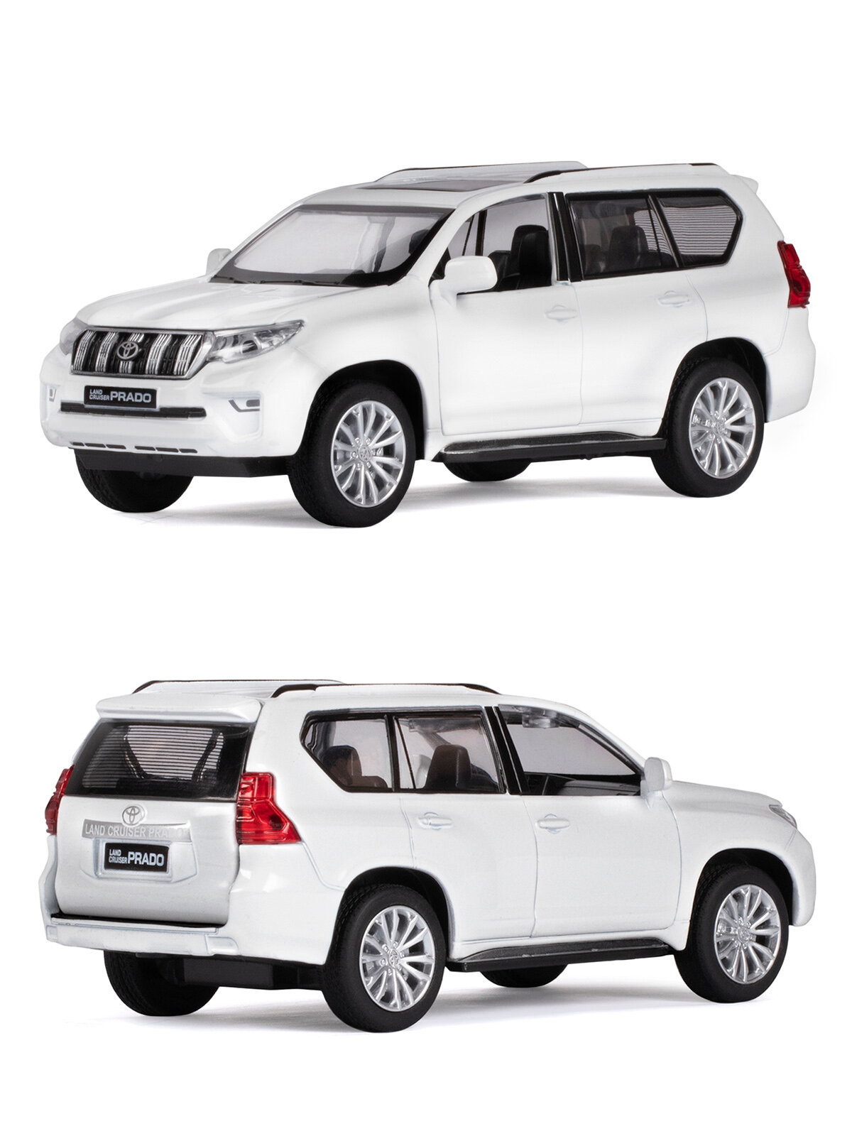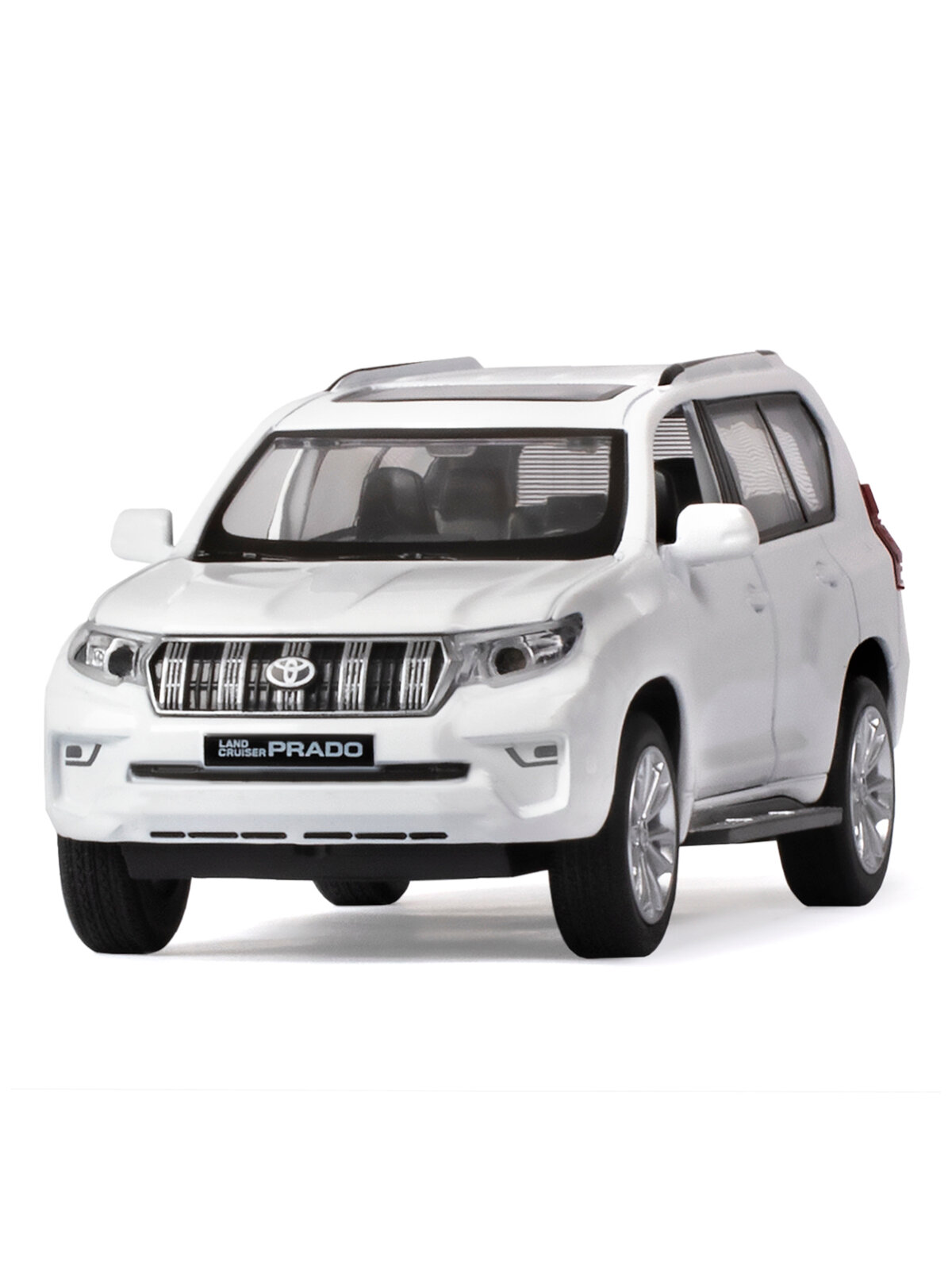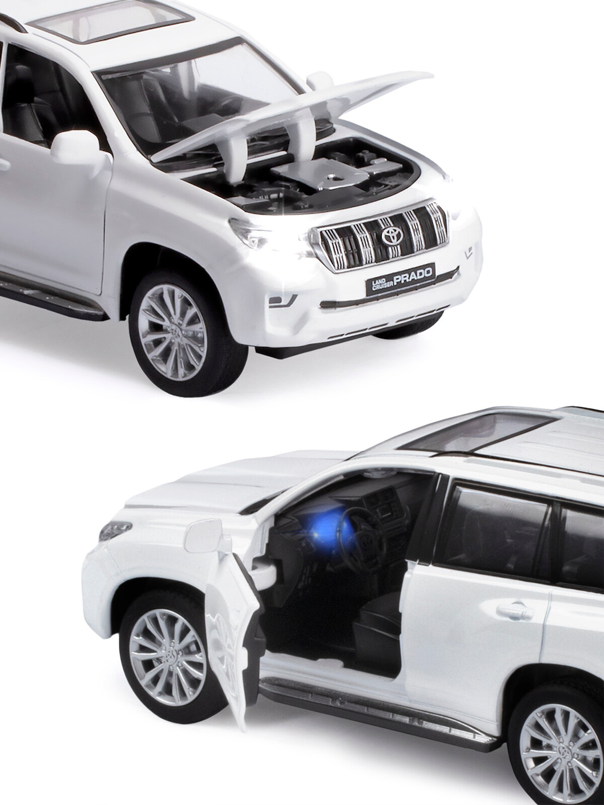 Машинка металлическая ТМ "Автопанорама", 1:32 Land Cruiser Prado, белый, инерция, свет, звук, открывающиеся двери