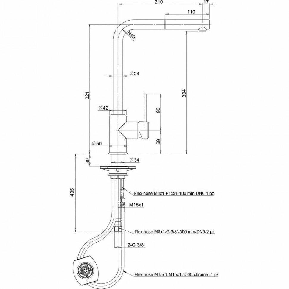 | Длина излива | 210 мм |
