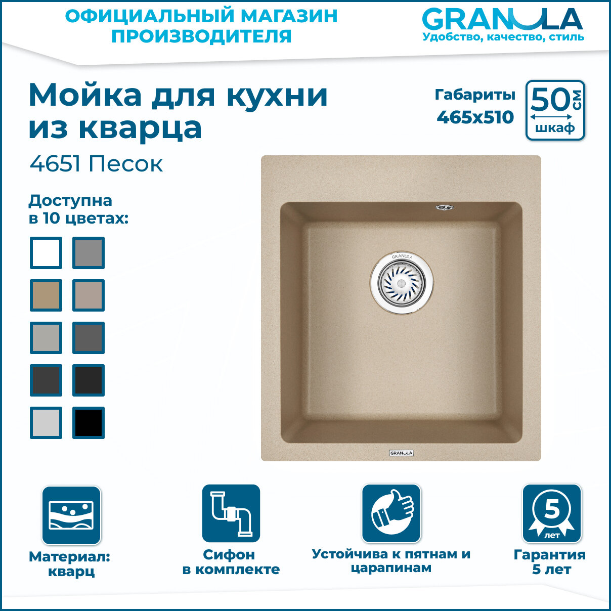 Купить GRANULA мойка кухонная кварцевая GR-4651 465*510 мм песок