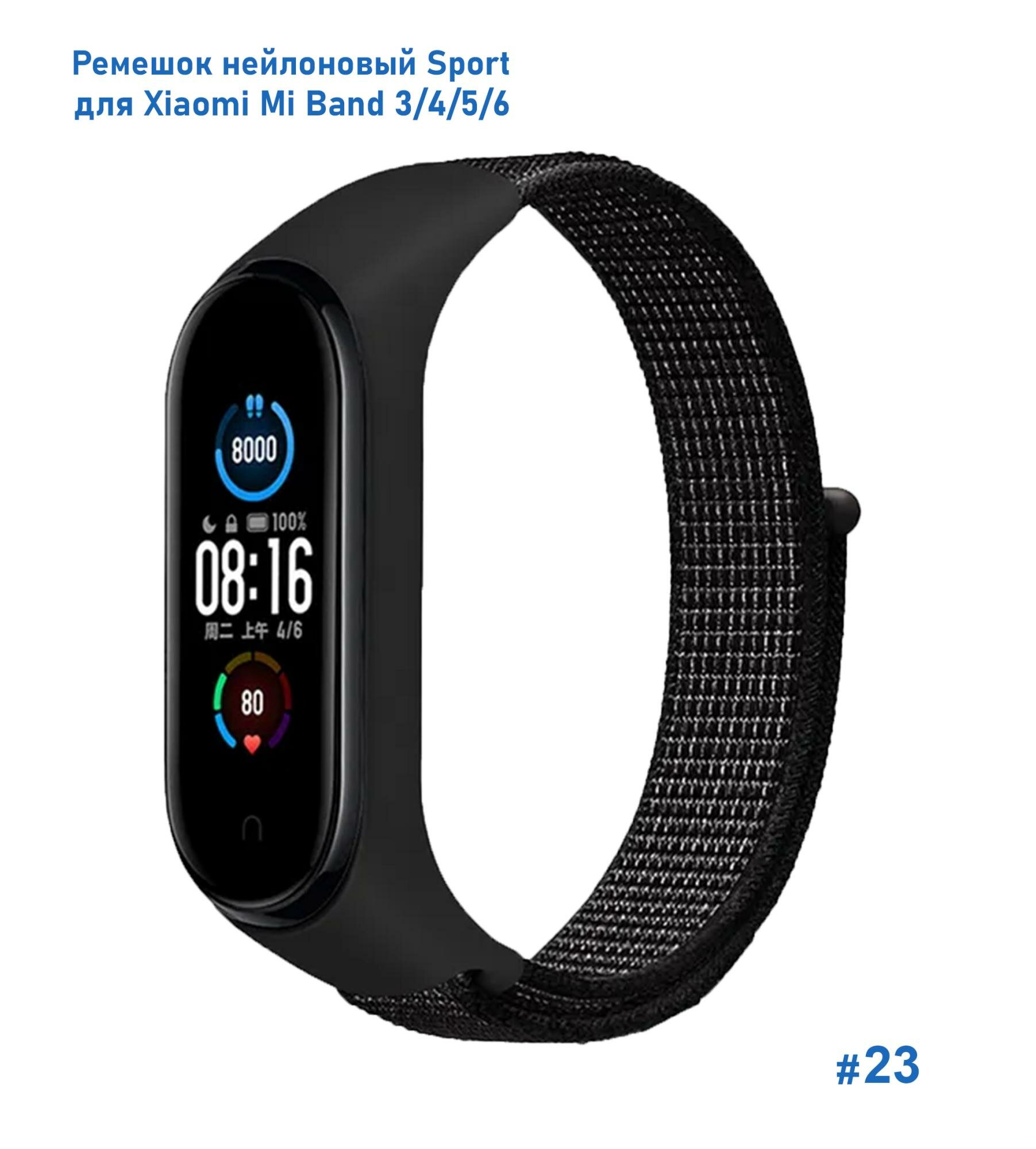 Ремешок нейлоновый Sport для Xiaomi Mi Band 3/4/5/6/7, 260мм, на липучке, черный (11)
