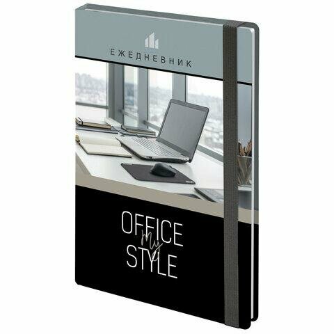 Ежедневник недатированный с резинкой, малый формат А6 (109х148 мм), BRAUBERG, 128 л., "Офисный", 114573, 114573