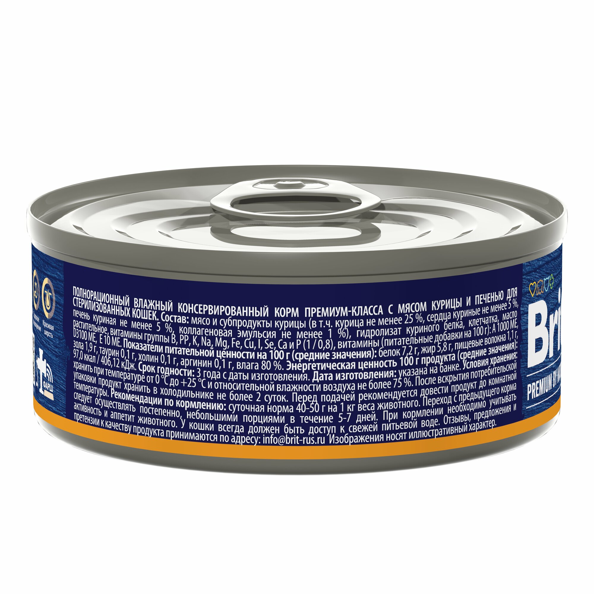 Корм Brit Premium By Nature Sterilised (консерв.) для стерилизованных кошек, курица с печенью, 100 г x 12 шт
