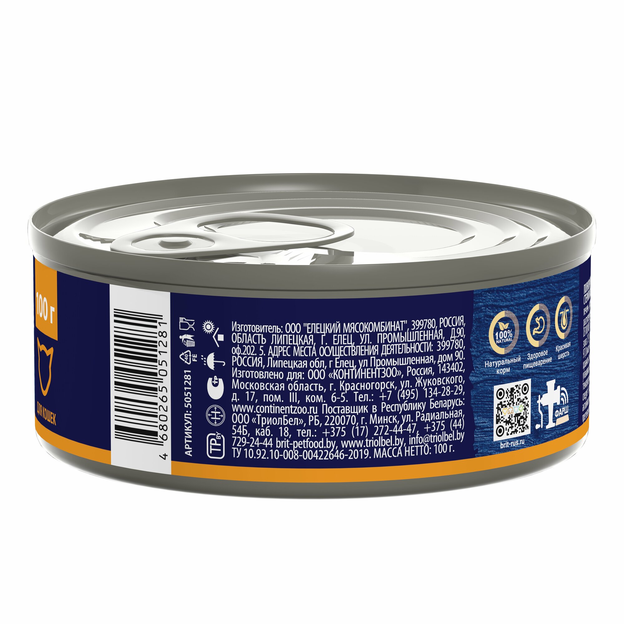 | Состав | Мясо и субпродукты курицы (в т.ч. курица не менее 25 %, сердца куриные не менее 5 %, печень куриная не менее 5 %, коллагеновая эмульсия не менее 1 %), гидролизат куриного белка, клетчатка, масло растительное, витамины группы B, РР, K, Na, Mg, Fe, Cu, I, Se, Са и Р (1 / 0,8) |