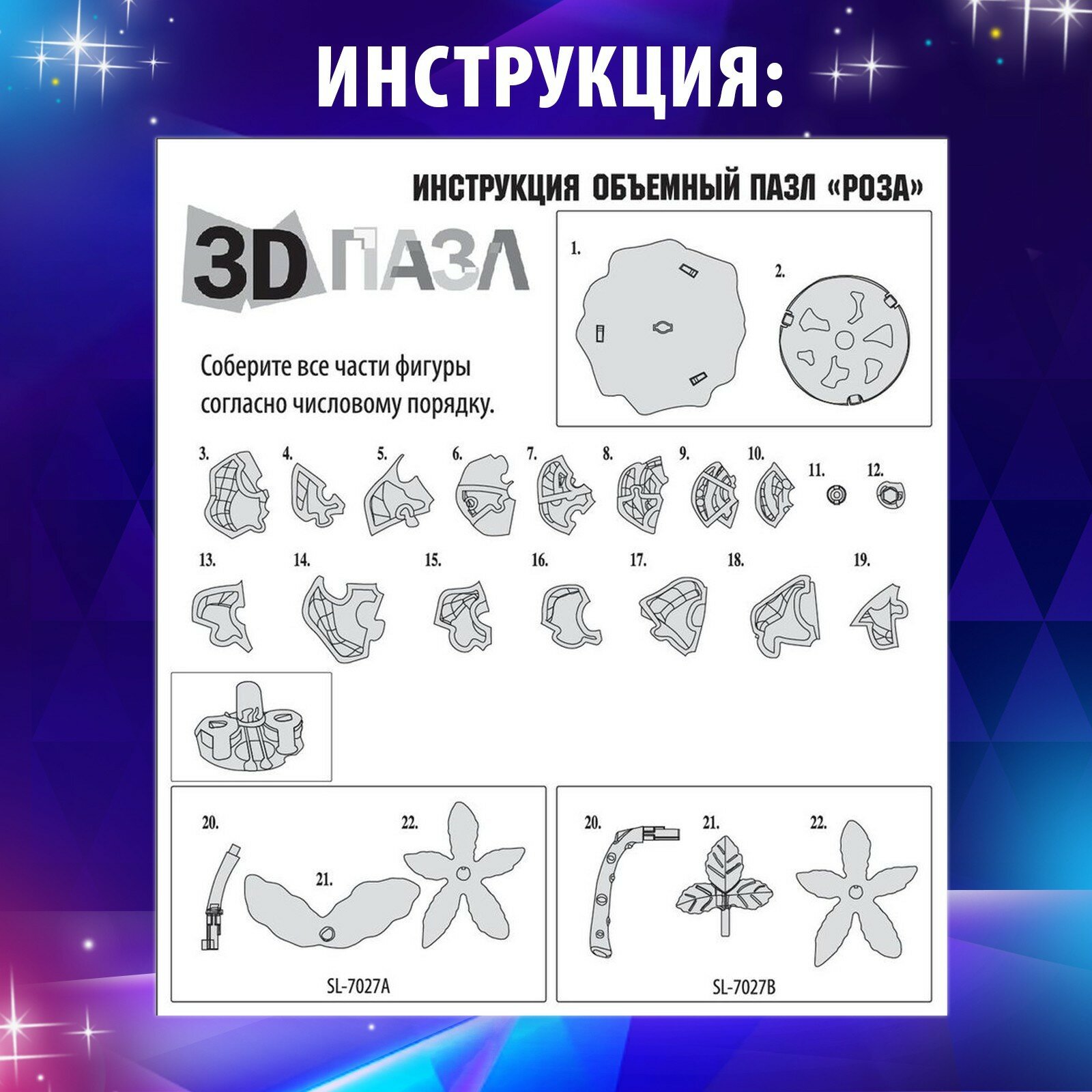 Ниже Вы можете прочитать отзывы на ZABIAKA 3D пазл «Роза», кристаллический, 22 детали, световые эффекты, цвета микс, ознакомится с подробными характеристиками, посмотреть интересные обзоры и фотографии на ZABIAKA 3D пазл «Роза», кристаллический, 22 детали, световые эффекты, цвета микс.
