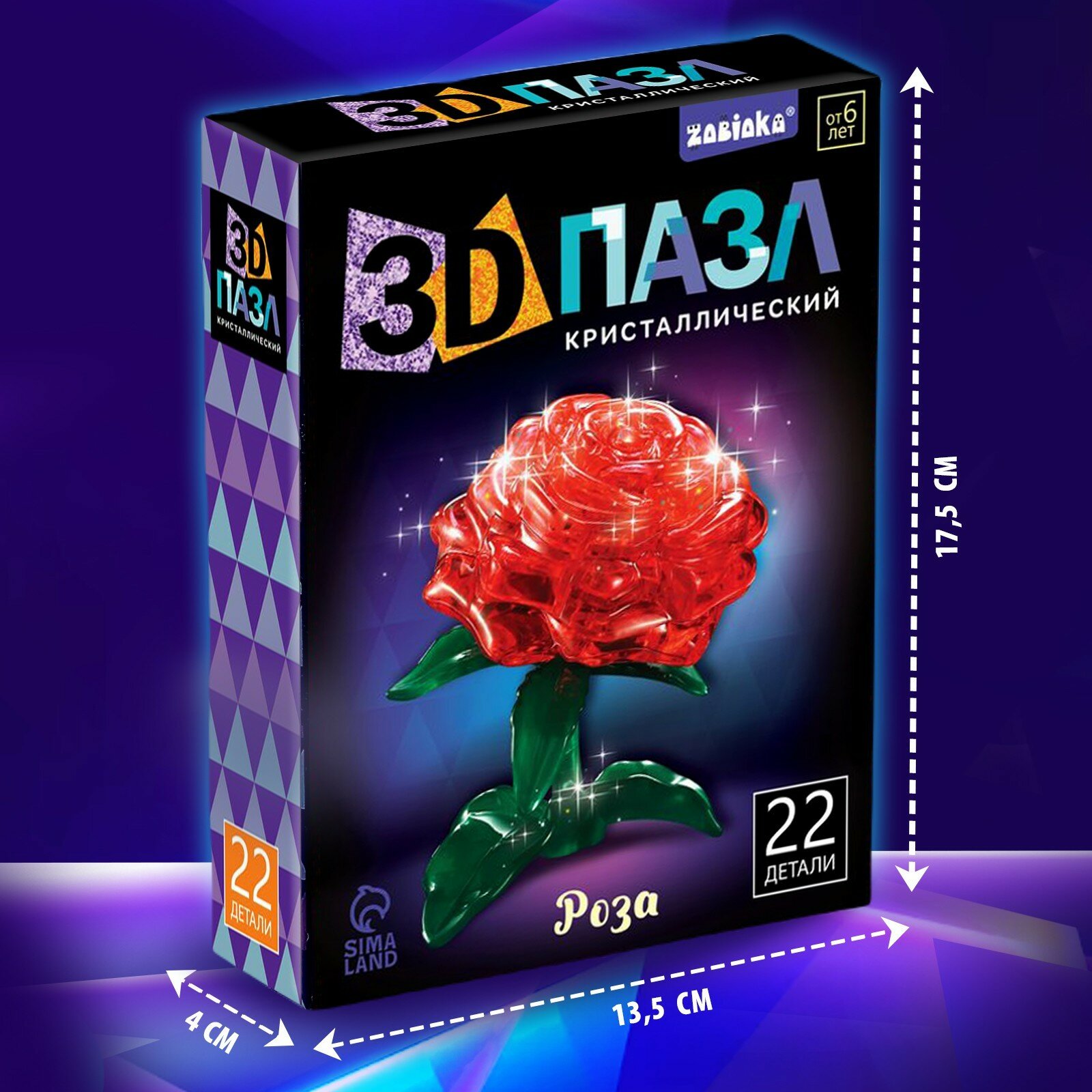 Купить ZABIAKA 3D пазл «Роза», кристаллический, 22 детали, световые эффекты, цвета микс