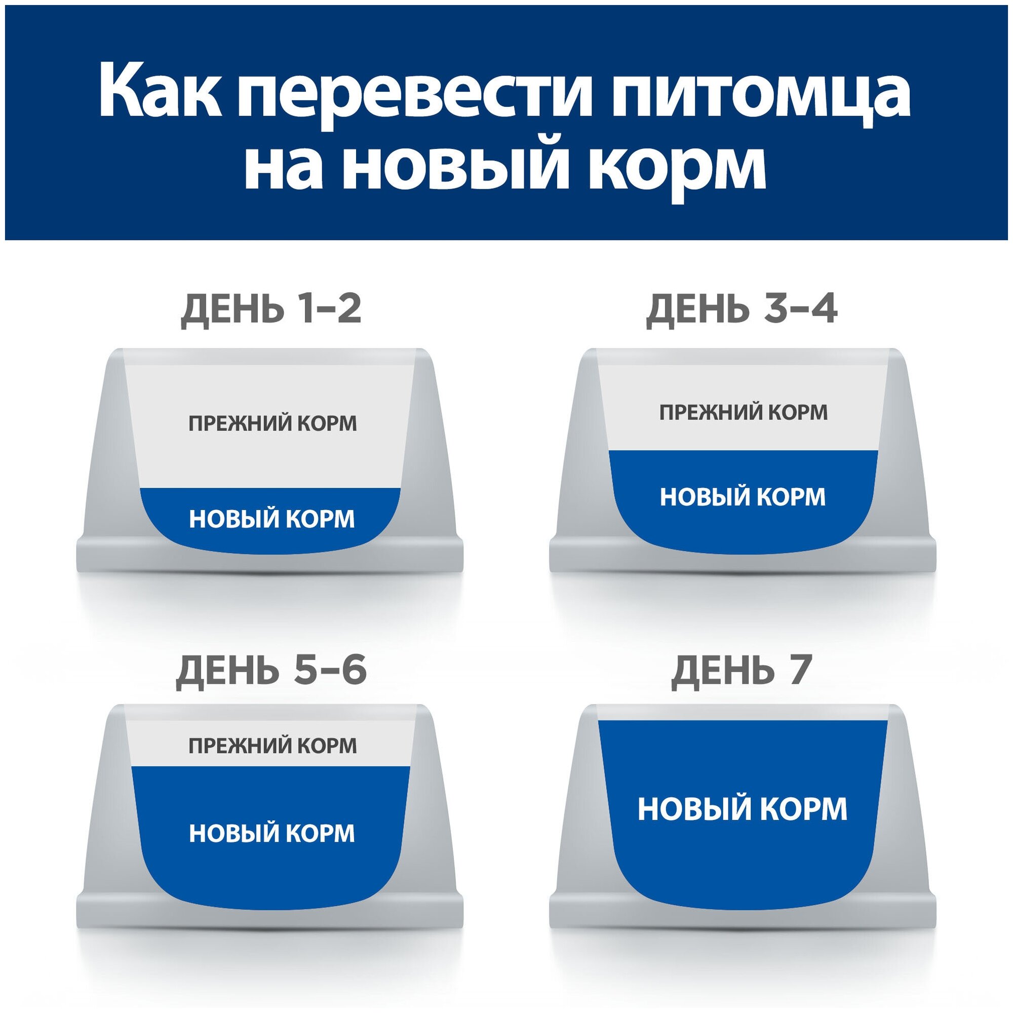 | Дозировка | Перед применением обратитесь к ветеринарному специалисту за рекомендациями по кормлению вашего питомца. Изучите упаковку корма для получения полной инструкции по кормлению. Ежедневные инструкции по питанию носят рекомендательный характер и подойдут на начальном этапе ухода за питомцем. Если требуется индивидуальная схема, обратитесь к ветеринарному специалисту. Всегда держите свежую чистую воду в открытом доступе для питомца. Переводите питомца на новый корм? В течение 7 дней или более постепенно увеличивайте содержание нового корма по отношению к прежнему до момента его полного замещения. Всегда держите свежую чистую воду в открытом доступе для питомца. Потребности вашего питомца в питании могут меняться с возрастом. Узнавайте об особенностях питания на каждой стадии жизни на каждом визите у ветеринарного специалиста. |