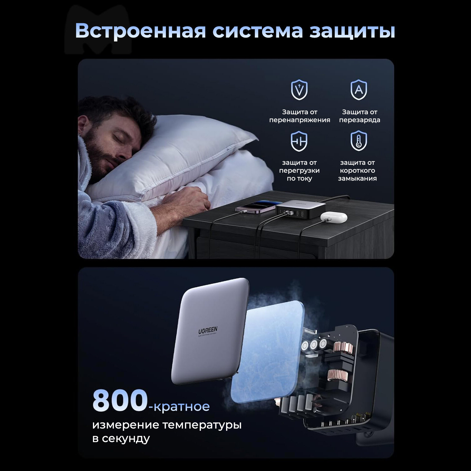 | Особенности | GaN / защита от перегрева / защита от перенапряжения |