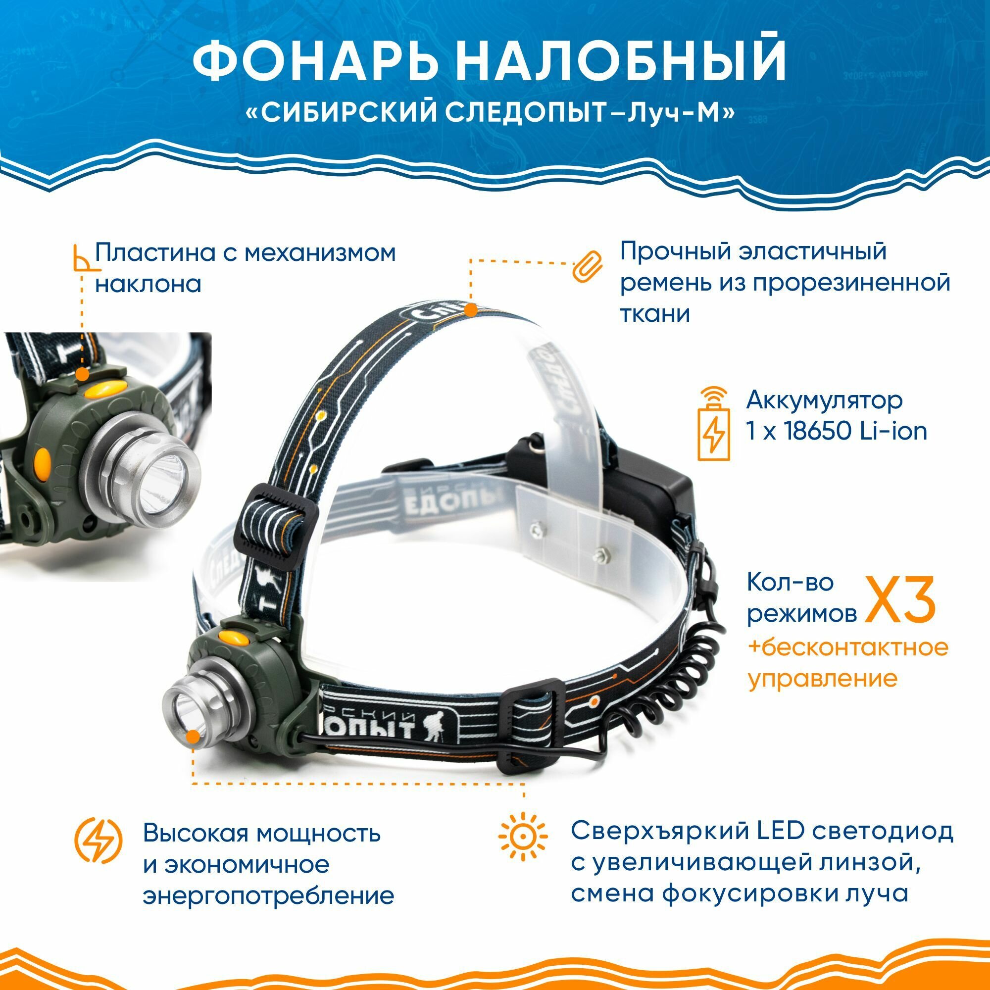 Купить Фонарь налобный аккумуляторный "сибирский СЛЕДОПЫТ-Луч-М", 1 LED