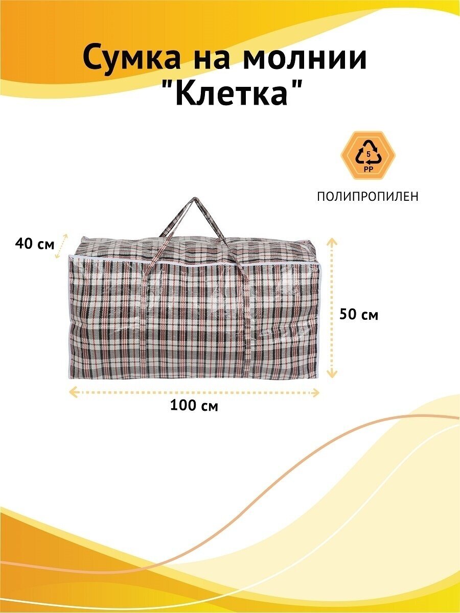 Сумка-баул на молнии с "Клетка" 100х50х40 см, полипропилен. габариты в сложенном виде 41х27х2 см