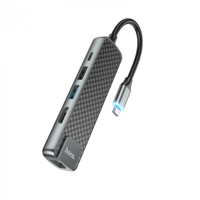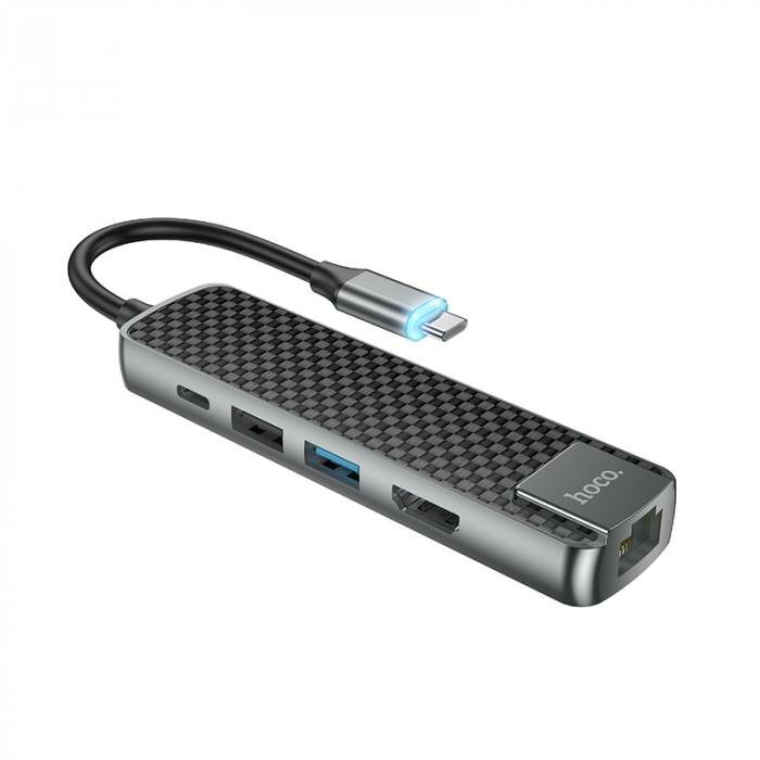 Купить Adapter / Переходник HOCO HB23 Easy view Type-C адаптер (HDMI+USB3.0+USB2.0+RJ45+PD), серый
