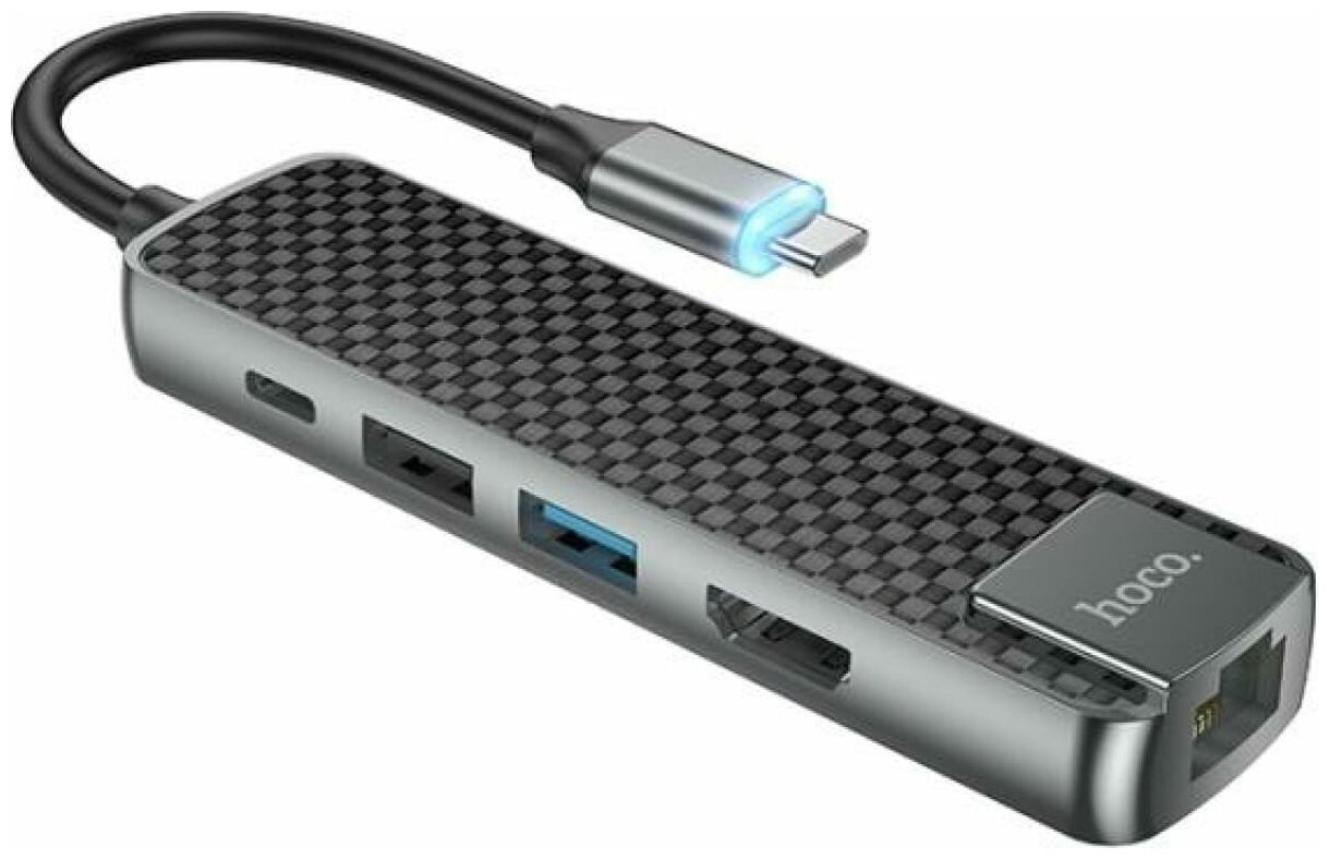 Hoco переходник HB23 Easy view Type-C адаптер (HDMI+USB3.0+USB2.0+RJ45+PD), серый 860806