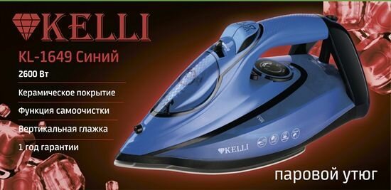 Утюг паровой Kelli KL-1649С электрический с керамическим покрытием синий интересное: