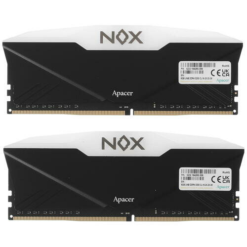 Apacer Оперативная память Apacer DDR4 16GB 3200MHz UDIMM NOX RGB Black Gaming Memory (PC4-25600) CL16 1.35V Kit (2x8GB) Intel XMP 2.0, Heat Sink (Retail) 1024*8 3 years (AH4U16G32C28YNBAA-2)