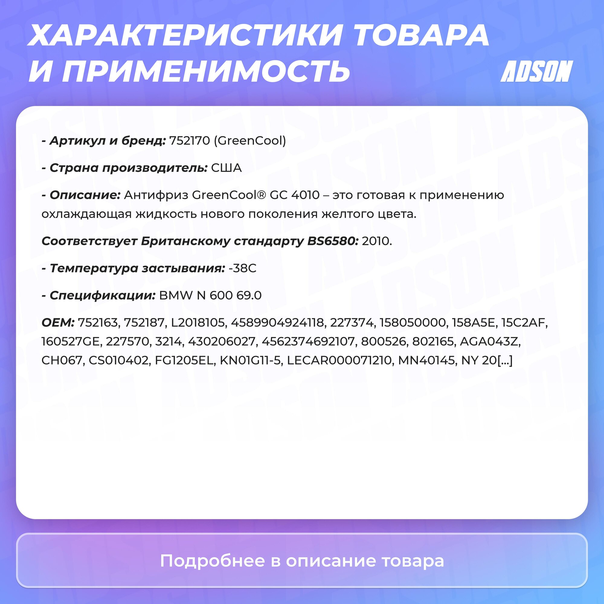 СохранитьАнтифриз Greencool Gс4010, 5 Кг (Готовый/Ready To Use), Желтый GreenCool арт. 752170 интересное:
