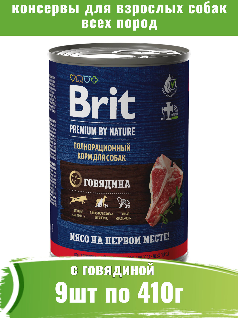 Корм для собак Brit Premium by Nature для взрослых собак всех пород, с говядиной 9шт.*410г