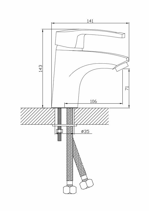 Смеситель на раковину Diadonna D80-110122 одноручковый, картридж 40 мм, хром, крепление 2 шпильки