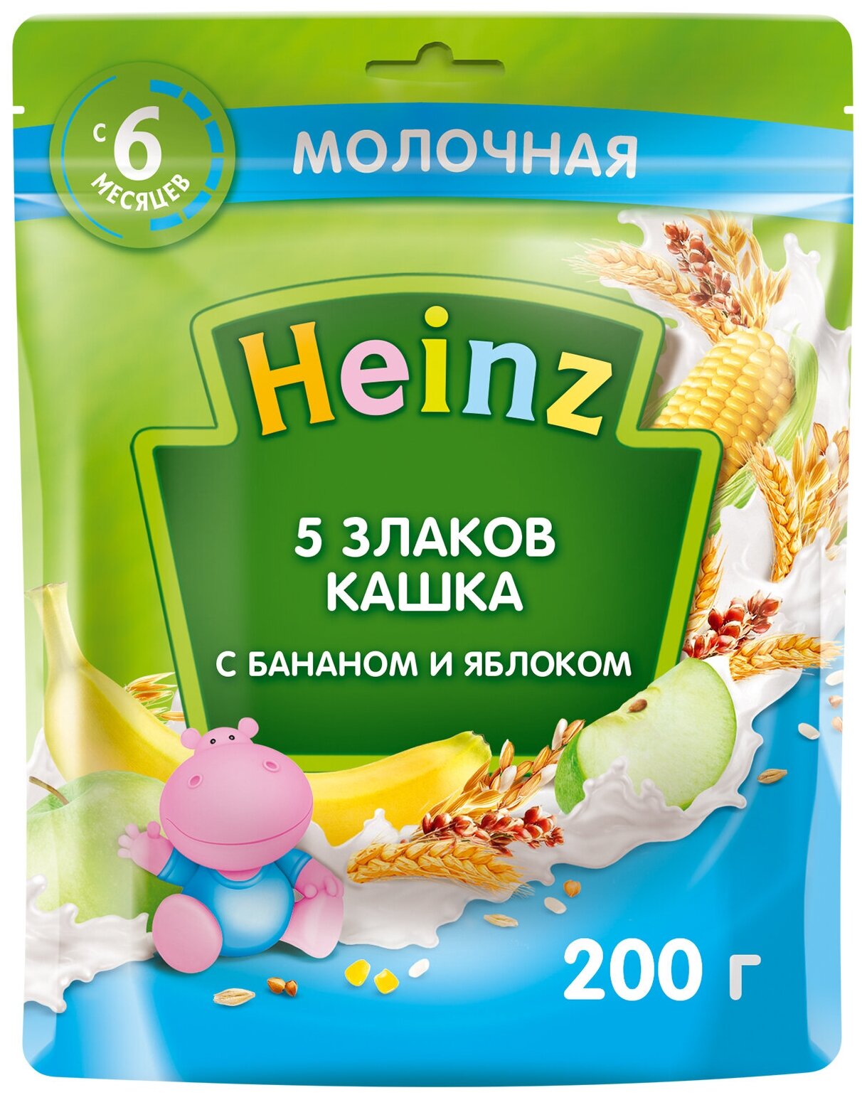 Каша Heinz молочная 5 злаков с бананом и яблоком 200 г с 6 месяцев