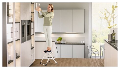 | Плюсы: | Прекрасная маленькая стремянка. Очень пригождается на кухне, чтобы доставать до полок. |