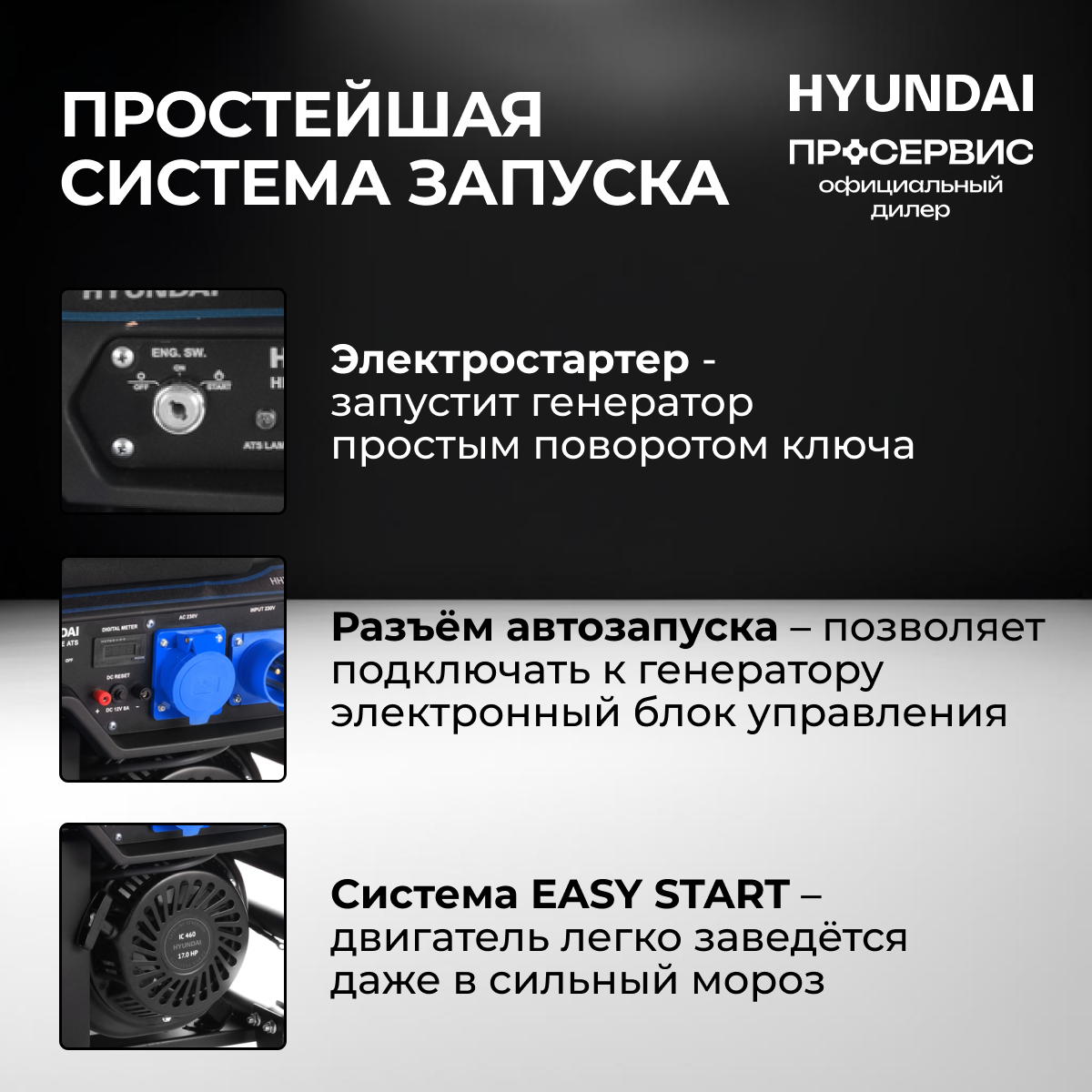 Бензиновый генератор Hyundai HHY 10050FE ATS интересное: