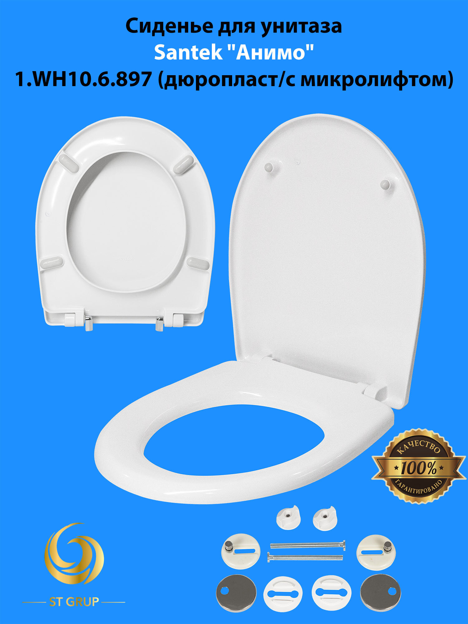 Сиденье для компакта "Анимо" дюро, микролифт, быстросъем, крепл. мет, белый (Анимо)