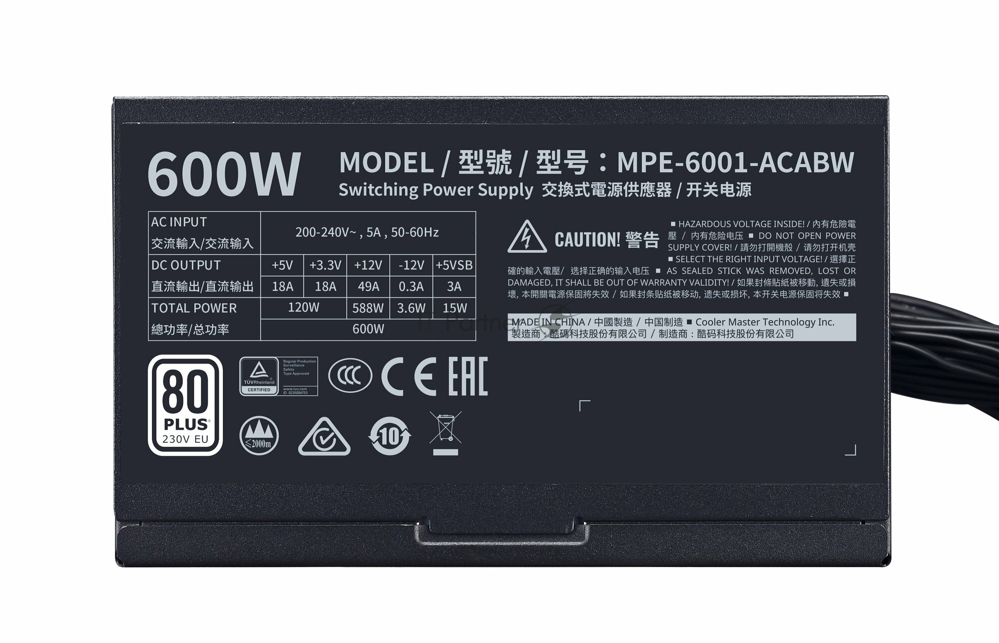 Cooler Master Блок питания MWE WHITE 230V 600W MPE-6001-ACABW COOLER MASTER