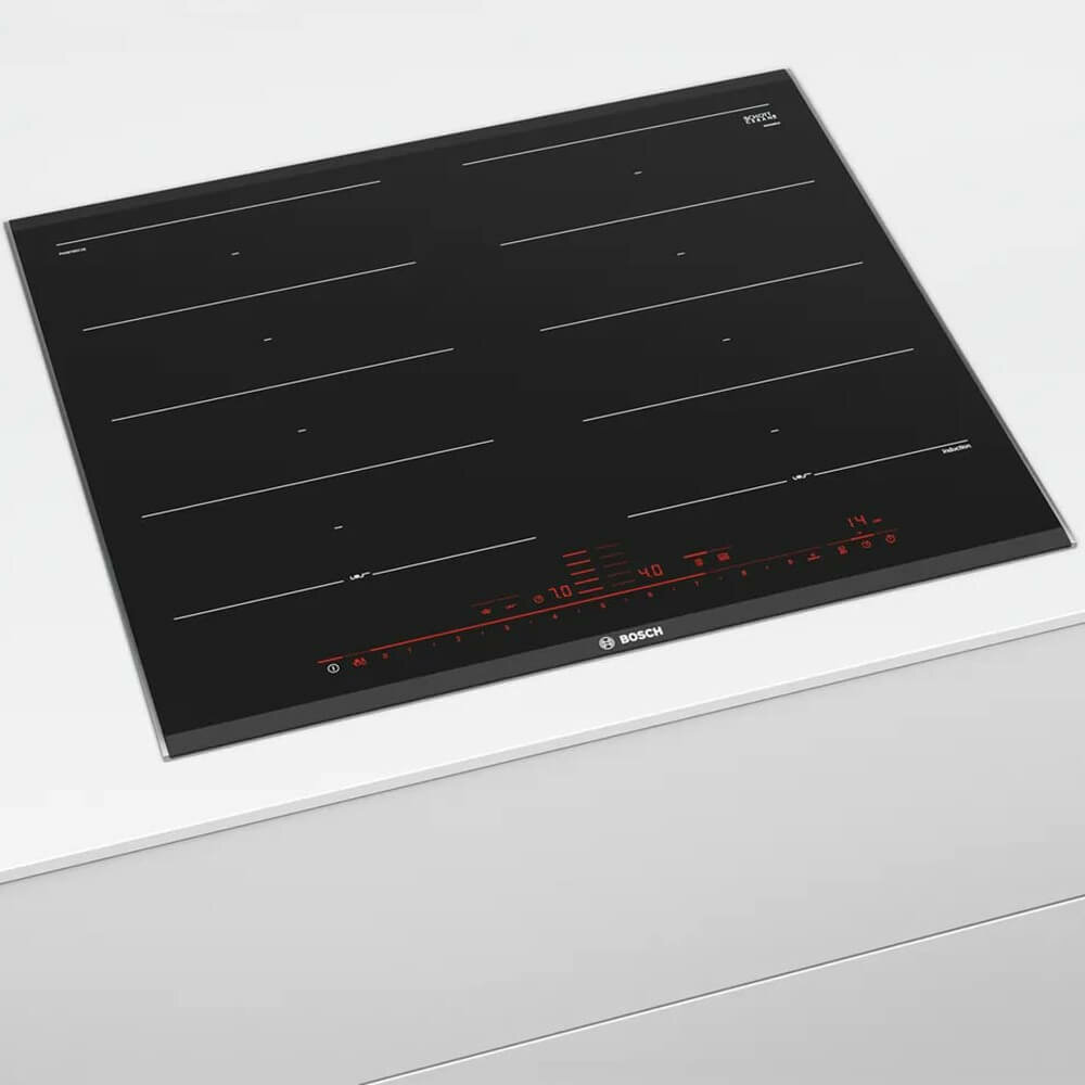 BOSCH Встраиваемая индукционная панель BOSCH Индукционная, Home Connect Serie 8, cтеклокерамика, черная, ширина 60см, 4 индукционных зоны нагрева, FlexInduction, сенсорное управление DirectSelect, функции HomeConnect, таймер, индикация остаточного тепла,