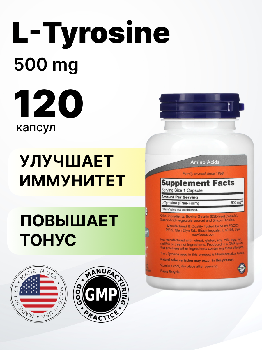 Now Foods L-Tyrosine, 500 мг - 120 капсул интересное: